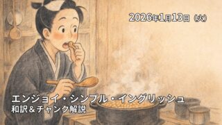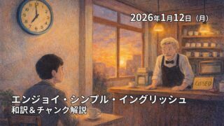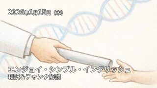 この記事は2026年1月15日の放送のEnjoy Simple English(エンジョイ・シンプル・イングリッシュ)の和訳、単語やチャンクの解説記事になります。ESEを使って英語を勉強したい方、中学英語の学び直しがしたい方、英会話を習得したい方などの英語学習をサポートするために記事を作成しています。ぜひご覧ください。