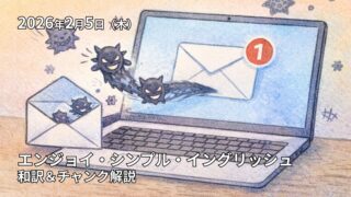 この記事は2026年2月5日の放送のEnjoy Simple English(エンジョイ・シンプル・イングリッシュ)の和訳、単語やチャンクの解説記事になります。ESEを使って英語を勉強したい方、中学英語の学び直しがしたい方、英会話を習得したい方などの英語学習をサポートするために記事を作成しています。ぜひご覧ください。