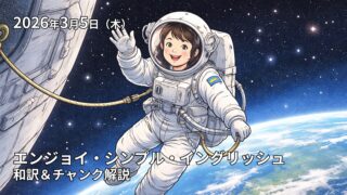 この記事は2026年3月6日の放送のEnjoy Simple English(エンジョイ・シンプル・イングリッシュ)の和訳、単語やチャンクの解説記事になります。ESEを使って英語を勉強したい方、中学英語の学び直しがしたい方、英会話を習得したい方などの英語学習をサポートするために記事を作成しています。ぜひご覧ください。