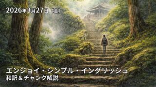 この記事は2026年3月27日の放送のEnjoy Simple English(エンジョイ・シンプル・イングリッシュ)の和訳、単語やチャンクの解説記事になります。ESEを使って英語を勉強したい方、中学英語の学び直しがしたい方、英会話を習得したい方などの英語学習をサポートするために記事を作成しています。ぜひご覧ください。