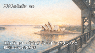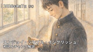 この記事は2026年4月7日の放送のEnjoy Simple English(エンジョイ・シンプル・イングリッシュ)の和訳、単語やチャンクの解説記事になります。ESEを使って英語を勉強したい方、中学英語の学び直しがしたい方、英会話を習得したい方などの英語学習をサポートするために記事を作成しています。ぜひご覧ください。