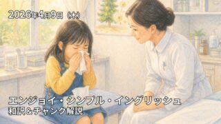 この記事は2026年4月14日の放送のEnjoy Simple English(エンジョイ・シンプル・イングリッシュ)の和訳、単語やチャンクの解説記事になります。ESEを使って英語を勉強したい方、中学英語の学び直しがしたい方、英会話を習得したい方などの英語学習をサポートするために記事を作成しています。ぜひご覧ください。
