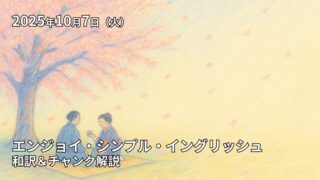 この記事は2025年10月8日の放送のEnjoy Simple English(エンジョイ・シンプル・イングリッシュ)の和訳、単語やチャンクの解説記事になります。ESEを使って英語を勉強したい方、中学英語の学び直しがしたい方、英会話を習得したい方などの英語学習をサポートするために記事を作成しています。ぜひご覧ください。