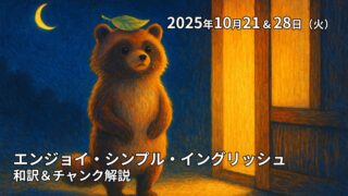 この記事はEnjoy Simple English(エンジョイ・シンプル・イングリッシュ)の2025年10月の第4週(10/20〜10/24)及び第5週(10/27〜10/31)放送分のチャンクをまとめて解説しています。ESEを使って英語を勉強したい方、中学英語の学び直しがしたい方、英会話を習得したい方などの英語学習をサポートするために記事を作成しています。テキストで本文を確認したい方は、ESE10月号をご確認ください。また、日々の記事ではESEの和訳、単語やチャンクの解説をしています。ぜひご覧ください。