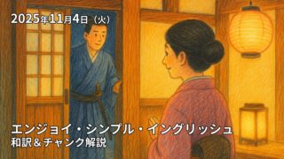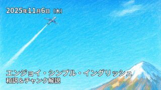 この記事は2025年11月6日の放送のEnjoy Simple English(エンジョイ・シンプル・イングリッシュ)の和訳、単語やチャンクの解説記事になります。ESEを使って英語を勉強したい方、中学英語の学び直しがしたい方、英会話を習得したい方などの英語学習をサポートするために記事を作成しています。ぜひご覧ください。