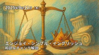 木曜日:哲学者からの答え エンジョイ・シンプル・イングリッシュ 和訳&チャンク解説(8/7・14) この記事は2025年8月7日及び14日の放送のEnjoy Simple English(エンジョイ・シンプル・イングリッシュ)の和訳、単語やチャンクの解説記事になります。ESEを使って英語を勉強したい方、中学英語の学び直しがしたい方、英会話を習得したい方などの英語学習をサポートするために記事を作成しています。ぜひご覧ください。 2025.08.07 木曜日:哲学者からの答え