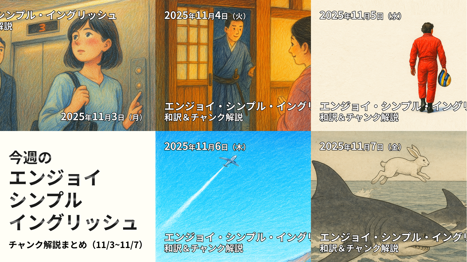 週末には、今週放送された5つのストーリーに登場したチャンクをまとめて確認できる復習記事をご用意しました。ESEを日々聴いている方も、「今週どんな表現が出てきたかな?」と振り返るのにもぜひご活用ください。
