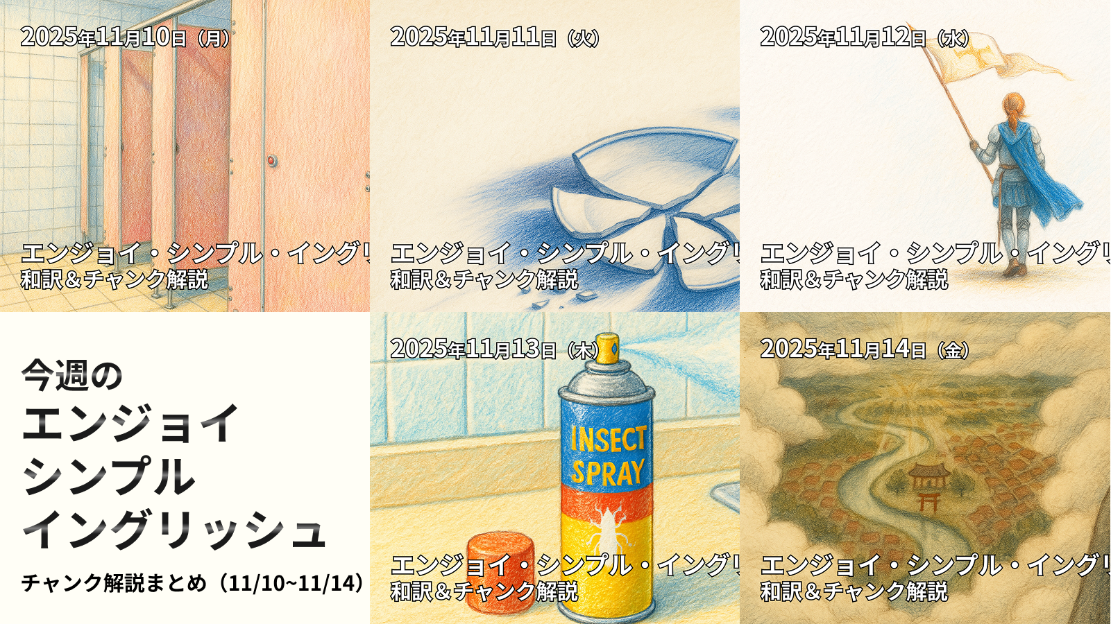 週末には、今週放送された5つのストーリーに登場したチャンクをまとめて確認できる復習記事をご用意しました。ESEを日々聴いている方も、「今週どんな表現が出てきたかな?」と振り返るのにもぜひご活用ください。