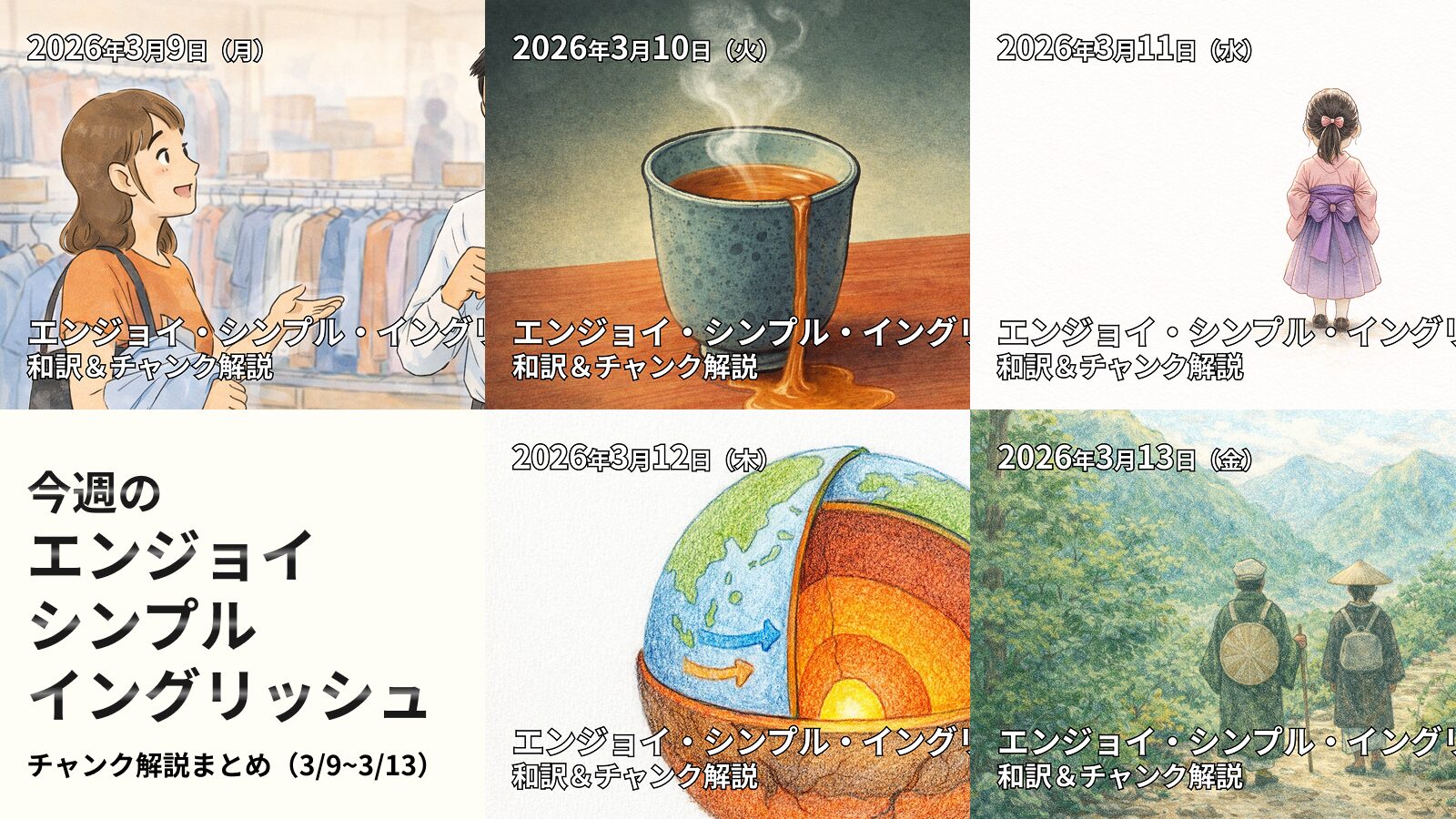 週末には、今週放送された5つのストーリーに登場したチャンクをまとめて確認できる復習記事をご用意しました。ESEを日々聴いている方も、「今週どんな表現が出てきたかな?」と振り返るのにもぜひご活用ください。