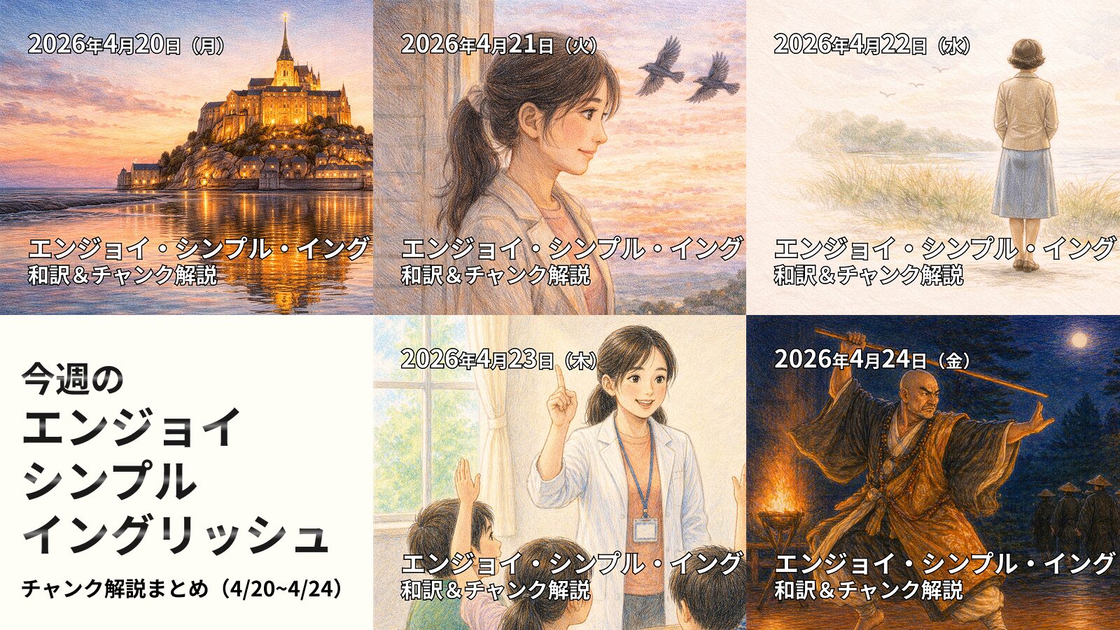 週末には、今週放送された5つのストーリーに登場したチャンクをまとめて確認できる復習記事をご用意しました。ESEを日々聴いている方も、「今週どんな表現が出てきたかな?」と振り返るのにもぜひご活用ください。