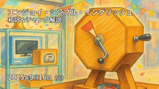 火曜日:オリジナル・ショート・ストーリー エンジョイ・シンプル・イングリッシュ 和訳&チャンク解説(9/16) この記事は2025年9月16日の放送のEnjoy Simple English(エンジョイ・シンプル・イングリッシュ)の和訳、単語やチャンクの解説記事になります。ESEを使って英語を勉強したい方、中学英語の学び直しがしたい方、英会話を習得したい方などの英語学習をサポートするために記事を作成しています。ぜひご覧ください。 2025.09.16 火曜日:オリジナル・ショート・ストーリー