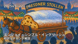 月曜日:オリジナル・ショート・ストーリー エンジョイ・シンプル・イングリッシュ 和訳&チャンク解説(9/29) この記事は2025年9月29日の放送のEnjoy Simple English(エンジョイ・シンプル・イングリッシュ)の和訳、単語やチャンクの解説記事になります。ESEを使って英語を勉強したい方、中学英語の学び直しがしたい方、英会話を習得したい方などの英語学習をサポートするために記事を作成しています。ぜひご覧ください。 2025.09.29 月曜日:オリジナル・ショート・ストーリー